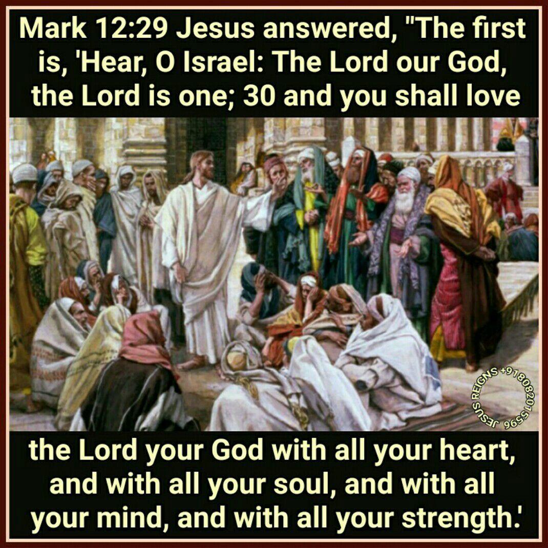 28 And one of the scribes came up and heard them disputing with one another, and seeing that he answered them well, asked him, "Which commandment is the first of all?" 29 Jesus answered, "The first is, Hear, O Israel: The Lord our God, the Lord is one; 30 and you shall love the Lord your God with all your heart, and with all your soul, and with all your mind, and with all your strength.' 31 The second is this, You shall love your neighbor as yourself.' There is no other commandment greater than these." 32 And the scribe said to him, "You are right, Teacher; you have truly said that he is one, and there is no other but he; 33 and to love him with all the heart, and with all the understanding, and with all the strength, and to love one's neighbor as oneself, is much more than all whole burnt offerings and sacrifices." 34 And when Jesus saw that he answered wisely, he said to him, "You are not far from the kingdom of God." And after that no one dared to ask him any question.
