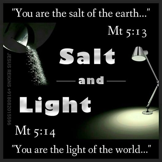 13 "You are the salt of the earth; but if salt has lost its taste, how shall its saltiness be restored? It is no longer good for anything except to be thrown out and trodden under foot by men. 14 You are the light of the world. A city set on a hill cannot be hid. 15 Nor do men light a lamp and put it under a bushel, but on a stand, and it gives light to all in the house. 16 Let your light so shine before men, that they may see your good works and give glory to your Father who is in heaven."