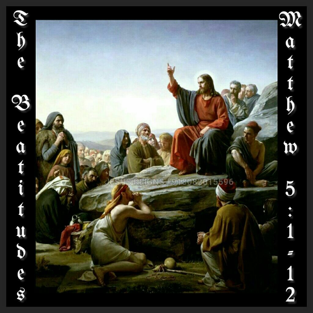 1 Seeing the crowds, he went up on the mountain, and when he sat down his disciples came to him. 2 And he opened his mouth and taught them, saying: 3 "Blessed are the poor in spirit, for theirs is the kingdom of heaven. 4 "Blessed are those who mourn, for they shall be comforted. 5 "Blessed are the meek, for they shall inherit the earth. 6 "Blessed are those who hunger and thirst for righteousness, for they shall be satisfied. 7 "Blessed are the merciful, for they shall obtain mercy. 8 "Blessed are the pure in heart, for they shall see God. 9 "Blessed are the peacemakers, for they shall be called sons of God. 10 "Blessed are those who are persecuted for righteousness' sake, for theirs is the kingdom of heaven. 11 "Blessed are you when men revile you and persecute you and utter all kinds of evil against you falsely on my account. 12 Rejoice and be glad, for your reward is great in heaven.