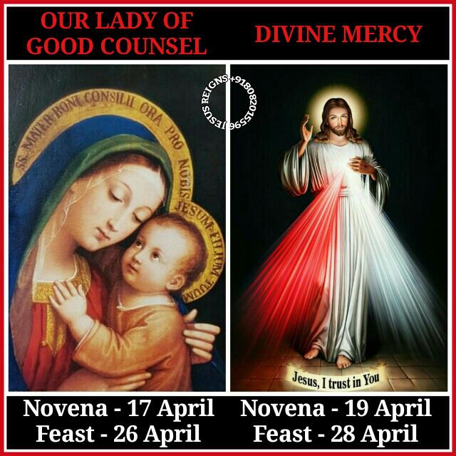 ⇒ It is indeed a great privilege to prepare for the DIVINE MERCY FEAST by praying the DIVINE MERCY NOVENA which begins on GOOD FRIDAY, 19th APRIL.