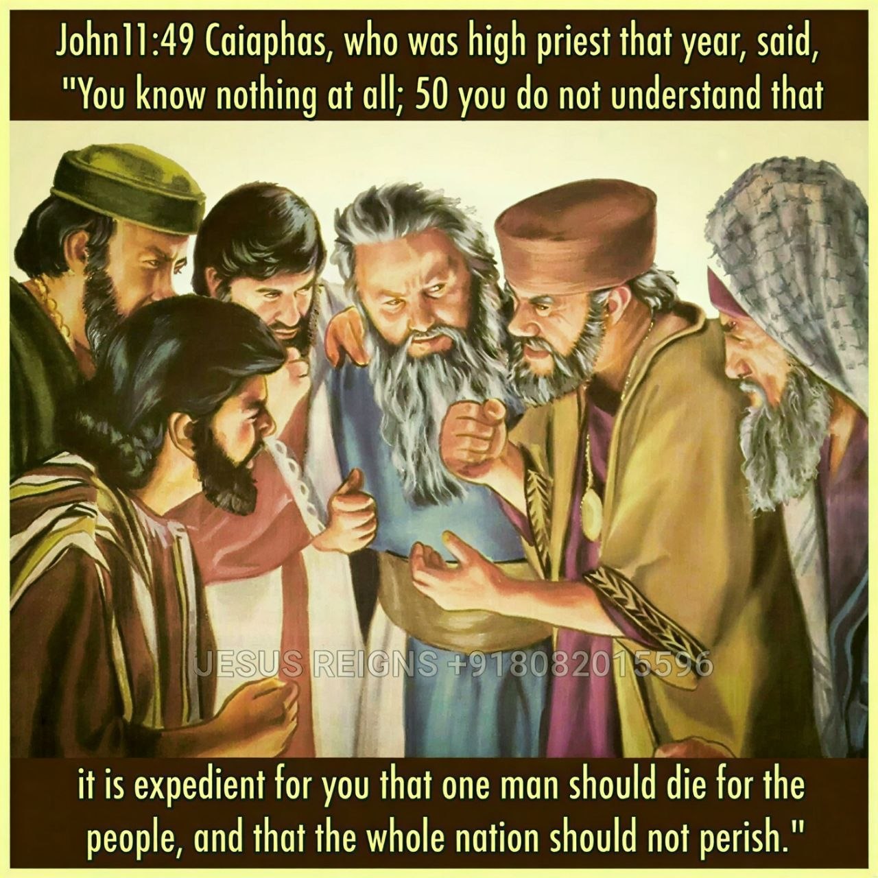 45 Many of the Jews therefore, who had come with Mary and had seen what he did, believed in him; 46 but some of them went to the Pharisees and told them what Jesus had done. 47 So the chief priests and the Pharisees gathered the council, and said, "What are we to do? For this man performs many signs. 48 If we let him go on thus, every one will believe in him, and the Romans will come and destroy both our holy place and our nation." 49 But one of them, Caiaphas, who was high priest that year, said to them, "You know nothing at all; 50 you do not understand that it is expedient for you that one man should die for the people, and that the whole nation should not perish." 51 He did not say this of his own accord, but being high priest that year he prophesied that Jesus should die for the nation, 52 and not for the nation only, but to gather into one the children of God who are scattered abroad. 53 So from that day on they took counsel how to put him to death.