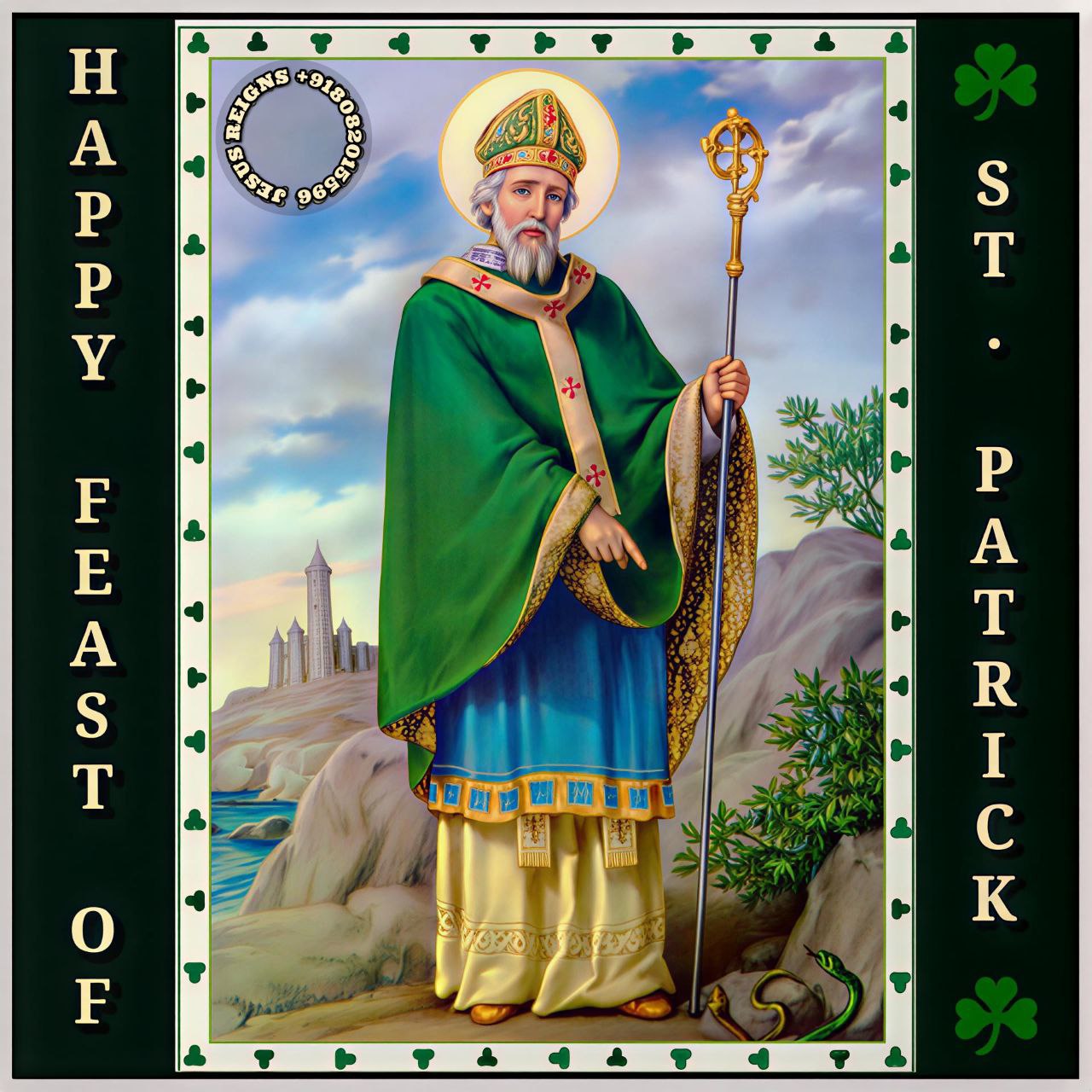 PRAYER: O God, who chose the Bishop Saint Patrick to preach your glory to the peoples of Ireland, grant, through his merits and intercession, that those who glory in the name of Christian may never cease to proclaim your wondrous deeds to all. Through our Lord Jesus Christ, your Son, who lives and reigns with you in the unity of the Holy Spirit, one God, for ever and ever. Amen.