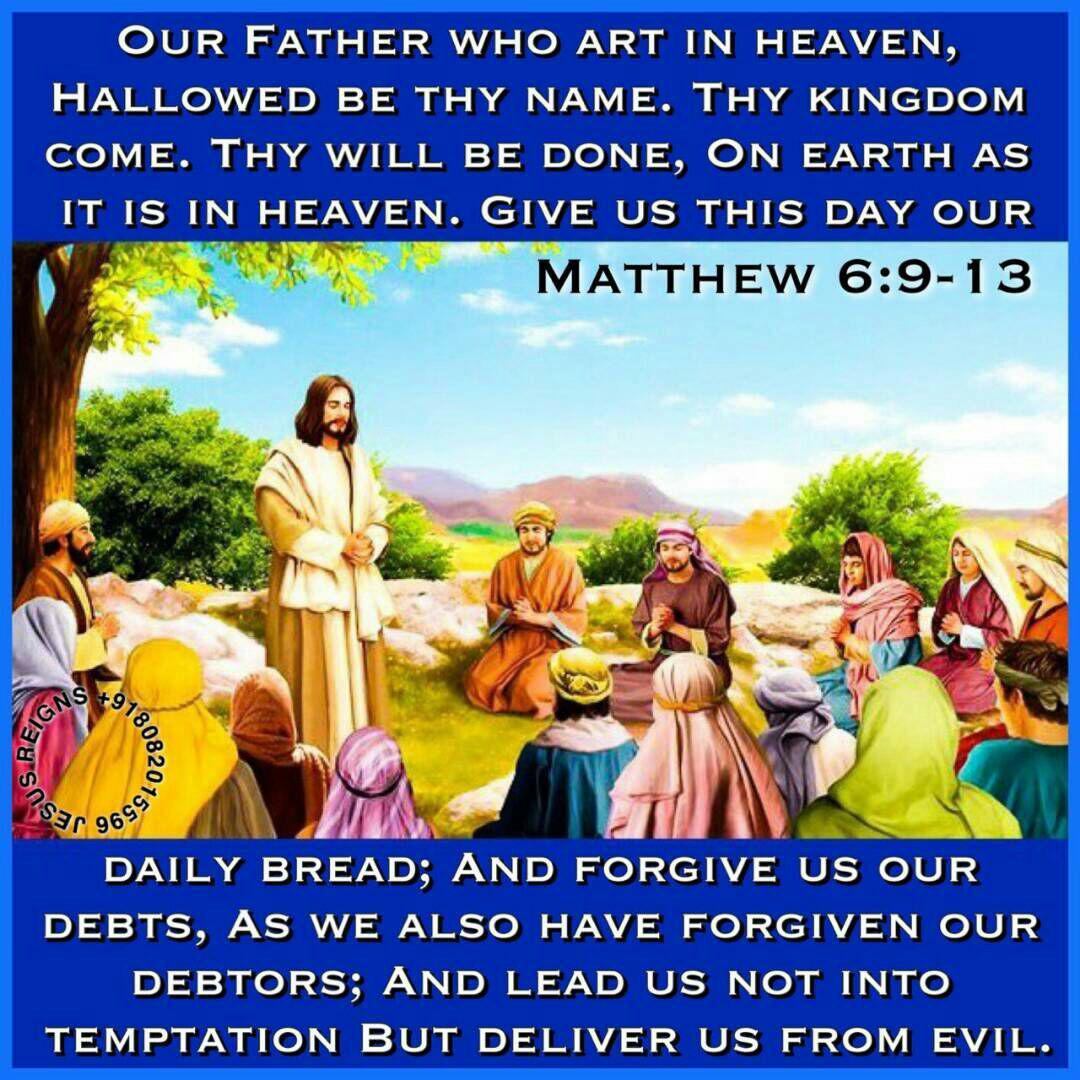 7 "And in praying do not heap up empty phrases as the Gentiles do; for they think that they will be heard for their many words. 8 Do not be like them, for your Father knows what you need before you ask him. 9 Pray then like this: Our Father who art in heaven, Hallowed be thy name. 10 Thy kingdom come. Thy will be done, On earth as it is in heaven. 11 Give us this day our daily bread; 12 And forgive us our debts, As we also have forgiven our debtors; 13 And lead us not into temptation, But deliver us from evil. 14 For if you forgive men their trespasses, your heavenly Father also will forgive you; 15 but if you do not forgive men their trespasses, neither will your Father forgive your trespasses.