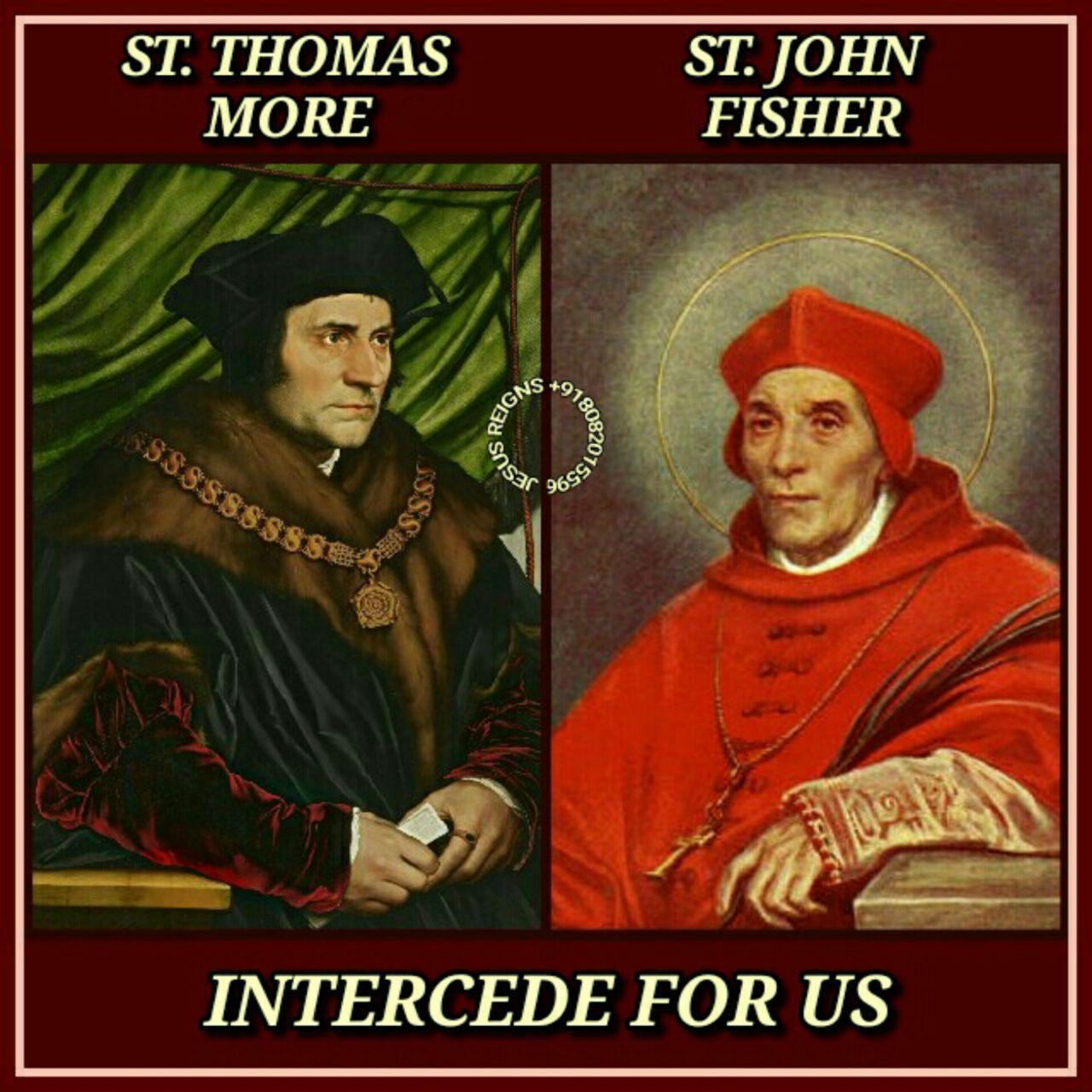 O God, who in martyrdom have brought true faith to its highest expression, graciously grant that, strengthened through the intercession of Saints John Fisher and Thomas More, we may confirm by the witness of our life the faith we profess with our lips. Through our Lord Jesus Christ, your Son, who lives and reigns with you in the unity of the Holy Spirit, one God, for ever and ever. Amen.