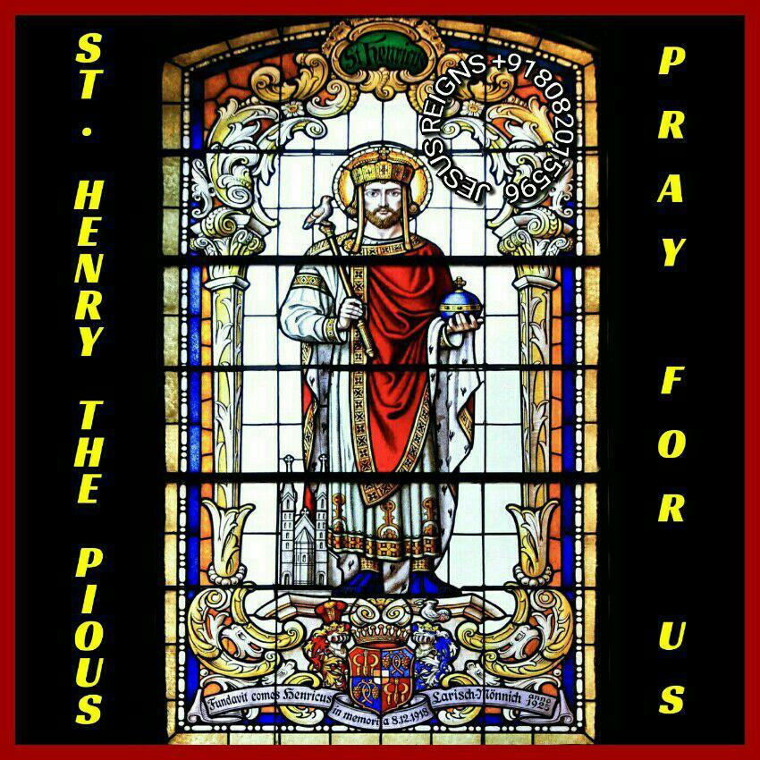 O God, whose abundant grace prepared Saint Henry to be raised by you in a wonderful way from the cares of earthly rule to heavenly realms, grant, we pray, through his intercession, that amid the uncertainties of this world we may hasten towards you with minds made pure. Through our Lord Jesus Christ, your Son, who lives and reigns with you in the unity of the Holy Spirit, one God, for ever and ever. Amen.