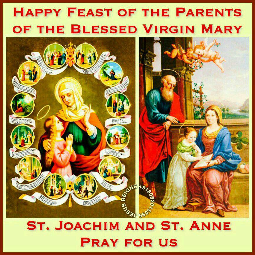 Who does not know about the great shrine of Ste. Anne de Beaupre in Canada, where miracles abound, where cured cripples leave their crutches, and where people come from thousands of miles to pray to the grandmother of Jesus? At one time, July 26 was the feast of St. Anne only, but with the new calendar the two feasts of the parents of the Blessed Virgin Mary have been joined and are celebrated today. Our information about Mary's parents comes from an apocryphal Christian writing, the Protoevangelium Jacobi (or Gospel of James), written about the year 170. According to this story, Joachim was a prominent and respected man who had no children, and he and his wife, Anne, looked upon this as a punishment from God. In answer to their prayers, Mary was born and was dedicated to God at a very early age.