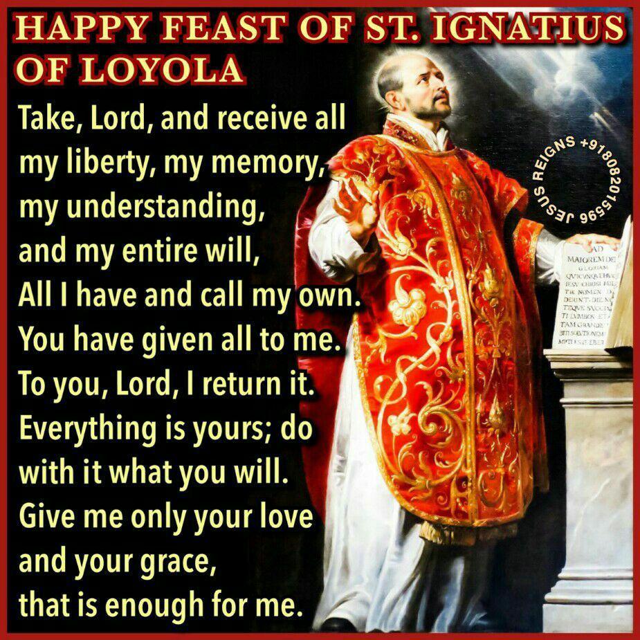O God, who raised up Saint Ignatius of Loyola in your Church to further the greater glory of your name, grant that by his help we may imitate him in fighting the good fight on earth and merit to receive with him a crown in heaven. Through our Lord Jesus Christ, your Son, who lives and reigns with you in the unity of the Holy Spirit, one God, for ever and ever. Amen.