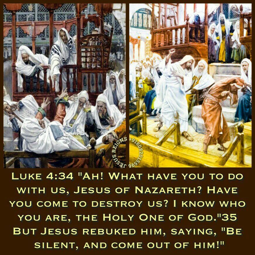 31 And he went down to Capernaum, a city of Galilee. And he was teaching them on the Sabbath; 32 and they were astonished at his teaching, for his word was with authority. 33 And in the synagogue there was a man who had the spirit of an unclean demon; and he cried out with a loud voice, 34 "Ah! What have you to do with us, Jesus of Nazareth? Have you come to destroy us? I know who you are, the Holy One of God." 35 But Jesus rebuked him, saying, "Be silent, and come out of him!" And when the demon had thrown him down in the midst, he came out of him, having done him no harm. 36 And they were all amazed and said to one another, "What is this word? For with authority and power he commands the unclean spirits, and they come out." 37 And reports of him went out into every place in the surrounding region.