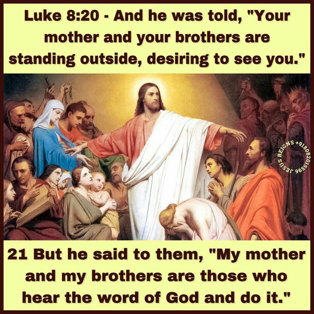 19 Then his mother and his brothers came to him, but they could not reach him for the crowd. 20 And he was told, "Your mother and your brothers are standing outside, desiring to see you." 21 But he said to them, "My mother and my brothers are those who hear the word of God and do it."