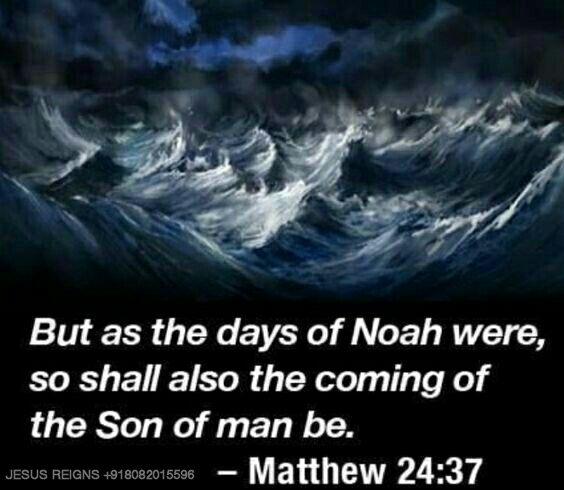 37 As were the days of Noah, so will be the coming of the Son of man. 38 For as in those days before the flood they were eating and drinking, marrying and giving in marriage, until the day when Noah entered the ark, 39 and they did not know until the flood came and swept them all away, so will be the coming of the Son of man. 40 Then two men will be in the field; one is taken and one is left. 41 Two women will be grinding at the mill; one is taken and one is left. 42 Watch therefore, for you do not know on what day your Lord is coming. 43 But know this, that if the householder had known in what part of the night the thief was coming, he would have watched and would not have let his house be broken into. 44 Therefore you also must be ready; for the Son of man is coming at an hour you do not expect.
