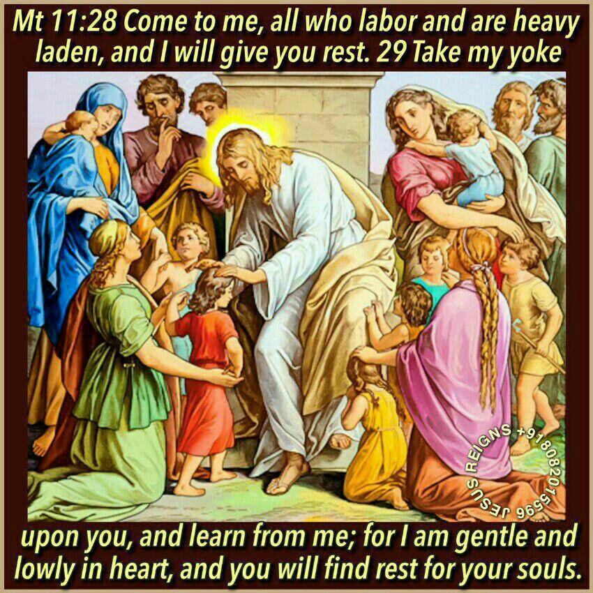 28 Come to me, all who labor and are heavy laden, and I will give you rest.29 Take my yoke upon you, and learn from me; for I am gentle and lowly in heart, and you will find rest for your souls. 30 For my yoke is easy, and my burden is light."