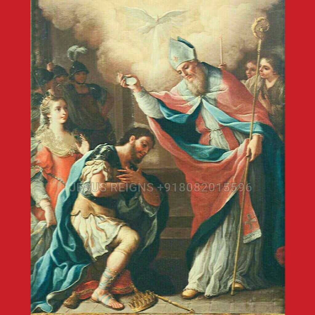 Numerous legends dramatize his life and work, e.g., how he freed Constantine from leprosy by baptism; how he killed a ferocious dragon that was contaminating the air with his poisonous breath. Such legends were meant to portray the effects of baptism and Christianity's triumph over idolatry. For a long time the feast of St. Sylvester was a holyday of obligation. The Divine Office notes: He called the weekdays feria, because for the Christian every day is a "free day" (the term is still in use; thus Monday is feria secunda).