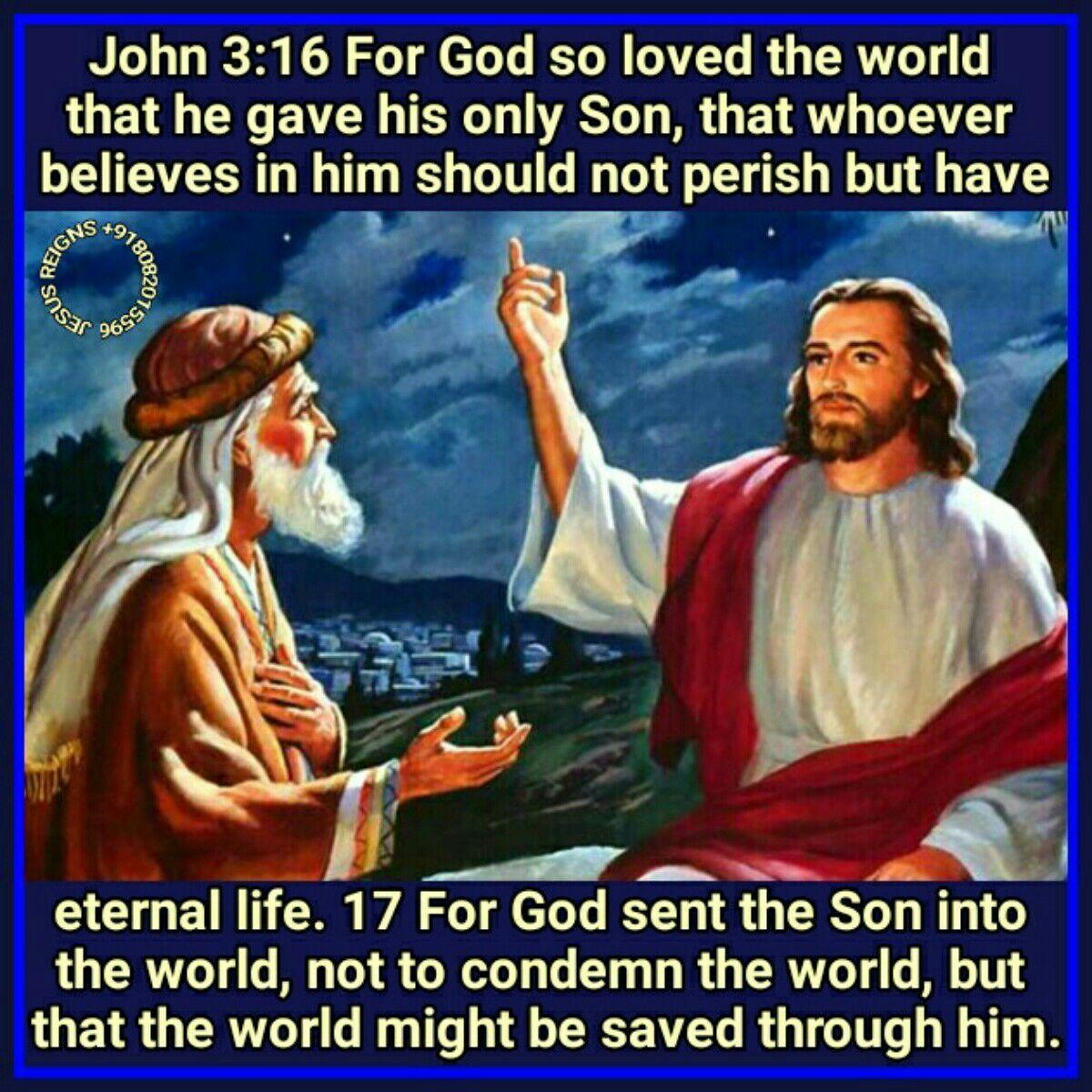 16 For God so loved the world that he gave his only Son, that whoever believes in him should not perish but have eternal life. 17 For God sent the Son into the world, not to condemn the world, but that the world might be saved through him. 18 He who believes in him is not condemned; he who does not believe is condemned already, because he has not believed in the name of the only Son of God.