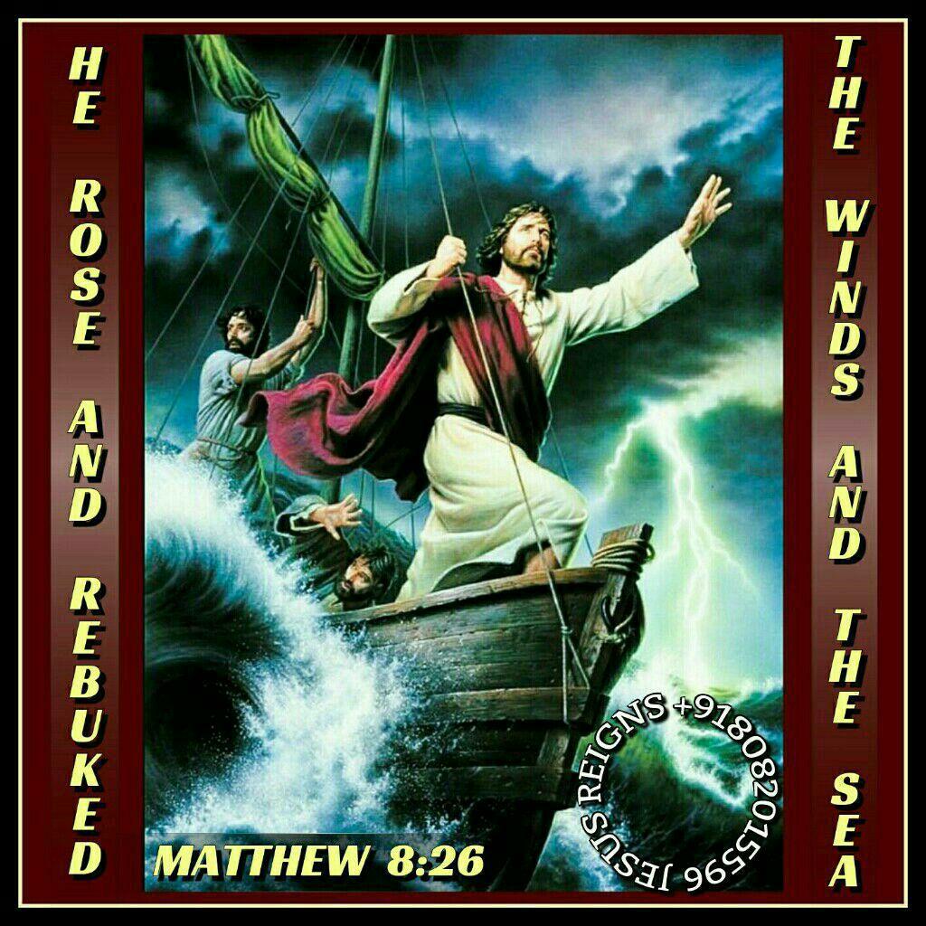 23 And when he got into the boat, his disciples followed him. 24 And behold, there arose a great storm on the sea, so that the boat was being swamped by the waves; but he was asleep. 25 And they went and woke him, saying, "Save us, Lord; we are perishing." 26 And he said to them, "Why are you afraid, O men of little faith?" Then he rose and rebuked the winds and the sea; and there was a great calm. 27 And the men marveled, saying, "What sort of man is this, that even winds and sea obey him?"