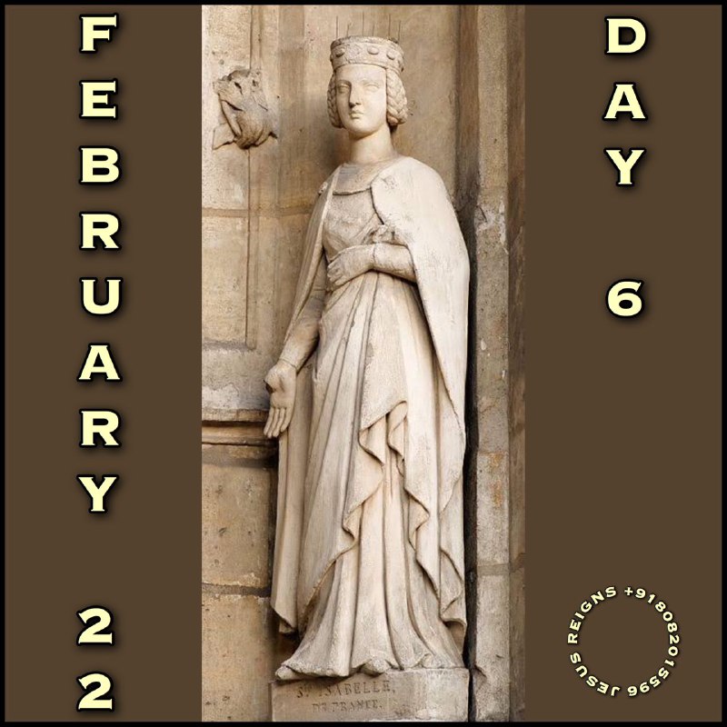 Dear Lord, we thank You for giving us St. Isabel of France as an example of holiness. Help us to imitate the virtue she showed in her deep spirit of poverty.