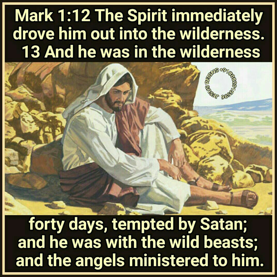 12 The Spirit immediately drove him out into the wilderness.13 And he was in the wilderness forty days, tempted by Satan; and he was with the wild beasts; and the angels ministered to him. 14 Now after John was arrested, Jesus came into Galilee, preaching the gospel of God,15 and saying, "The time is fulfilled, and the kingdom of God is at hand; repent, and believe in the gospel."