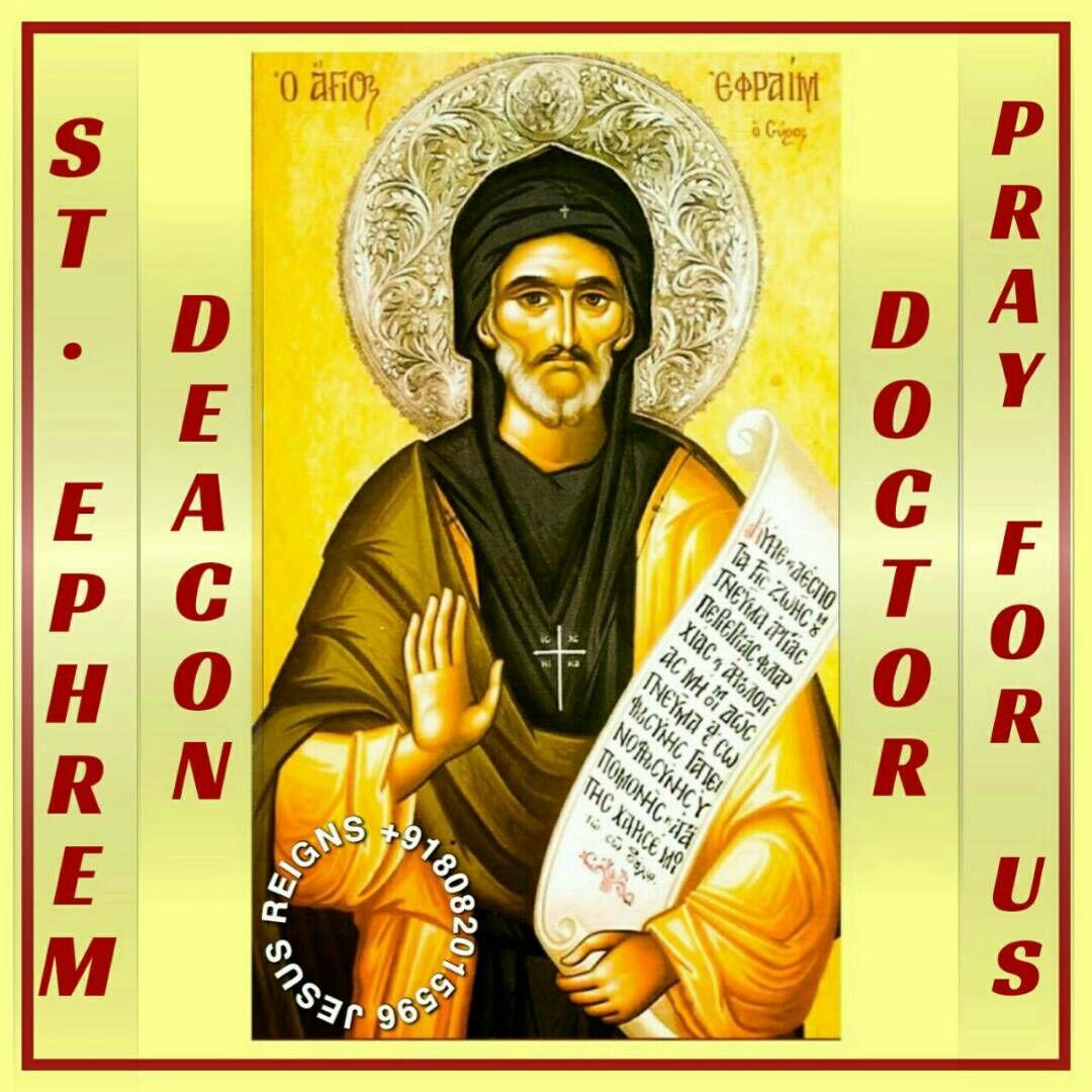 PRAYER: Pour into our hearts O Lord, we pray, the Holy Spirit, at whose prompting the Deacon Saint Ephrem exulted in singing of your mysteries and from whom he received the strength to serve you alone. Through our Lord Jesus Christ, your Son, who lives and reigns with you in the unity of the Holy Spirit, one God, for ever and ever. Amen.