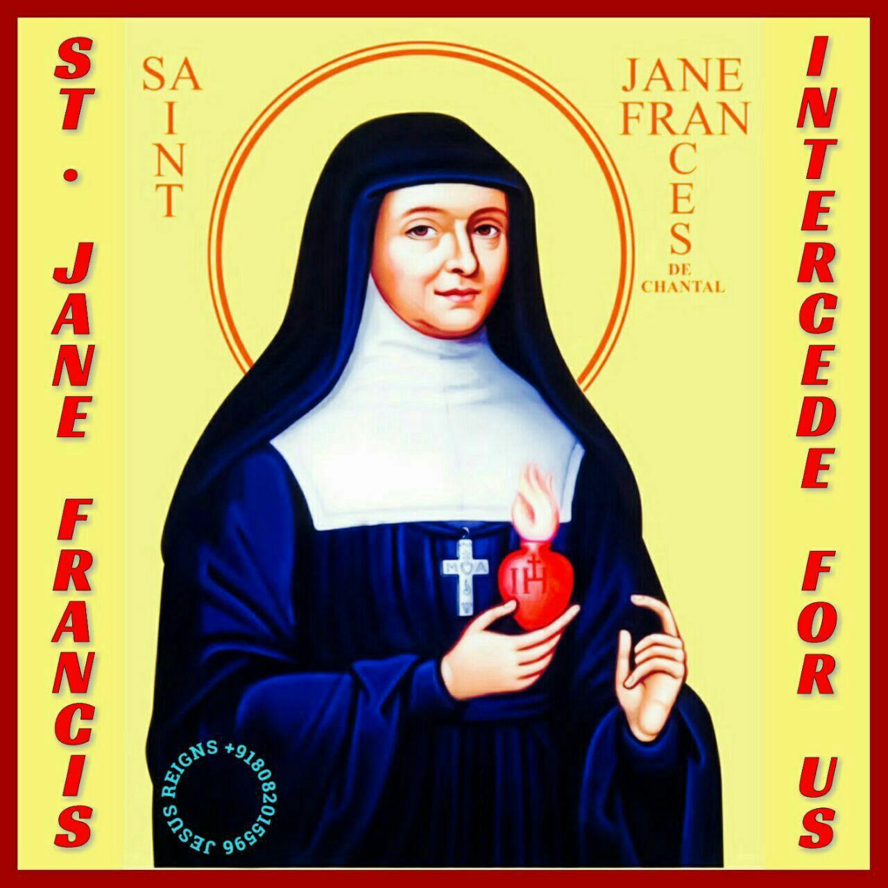 PRAYER: O God, who made Saint Jane Frances de Chantal radiant with outstanding merits in different walks of life, grant us, through her intercession, that walking faithfully in our vocation, we may constantly be examples of shining light. Through our Lord Jesus Christ, your Son, who lives and reigns with you in the unity of the Holy Spirit, one God, for ever and ever. Amen.