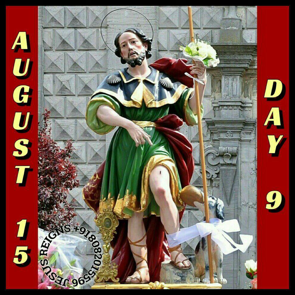 LET US PRAY: Grant, O Lord, we beseech Thee, that the intercession of Saint Roque, Thy Confessor, may be favorable and turn away from us the scourge of Thy wrath, and may reconcile us to thy Divine Majesty. We ask it through our Lord Jesus Christ. Amen.
