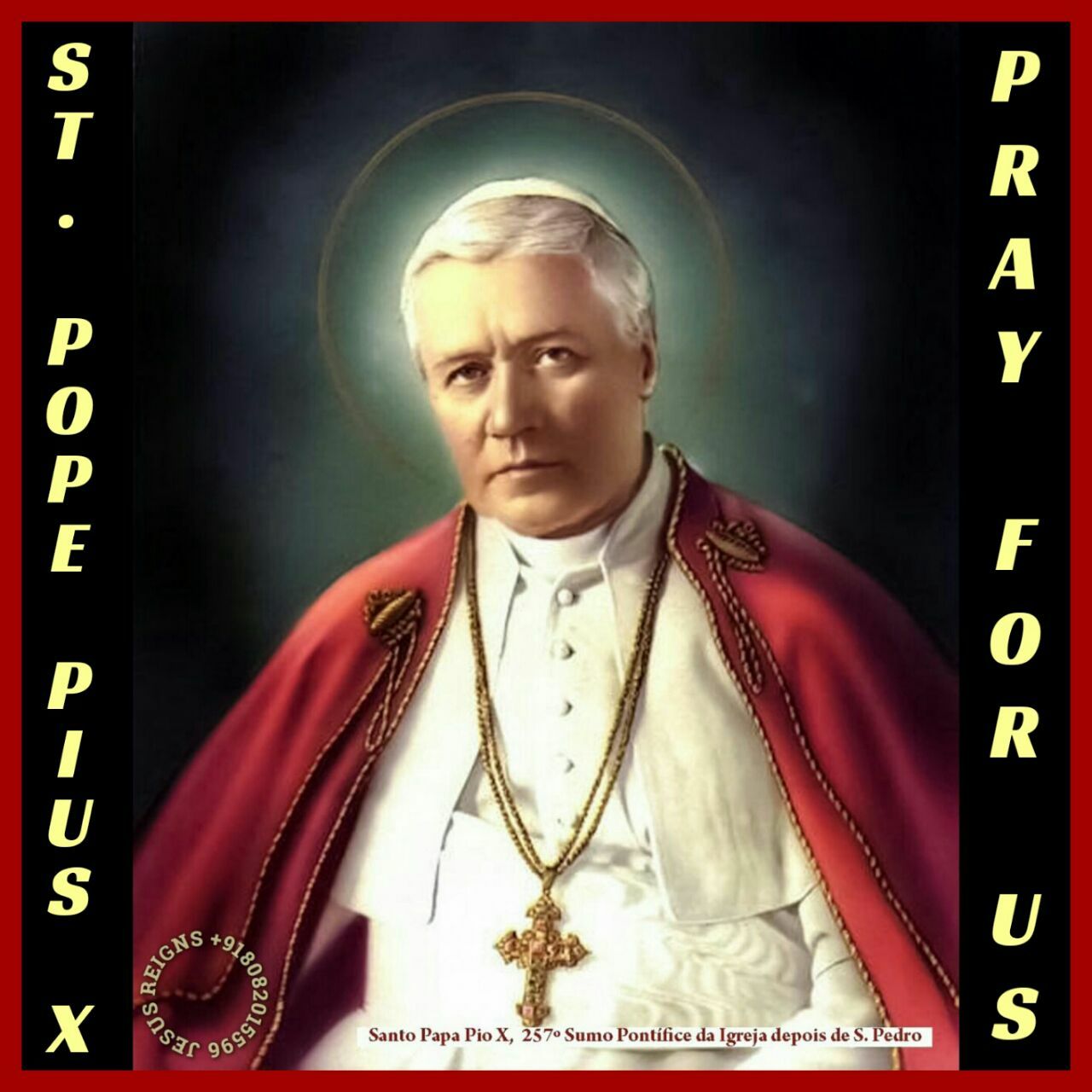 PRAYER: O God, who to safeguard the Catholic faith and to restore all things in Christ, filled Pope Saint Pius the Tenth with heavenly wisdom and apostolic fortitude, graciously grant that, following his teaching and example, we may gain an eternal prize. Through our Lord Jesus Christ, your Son, who lives and reigns with you in the unity of the Holy Spirit, one God, for ever and ever. Amen.