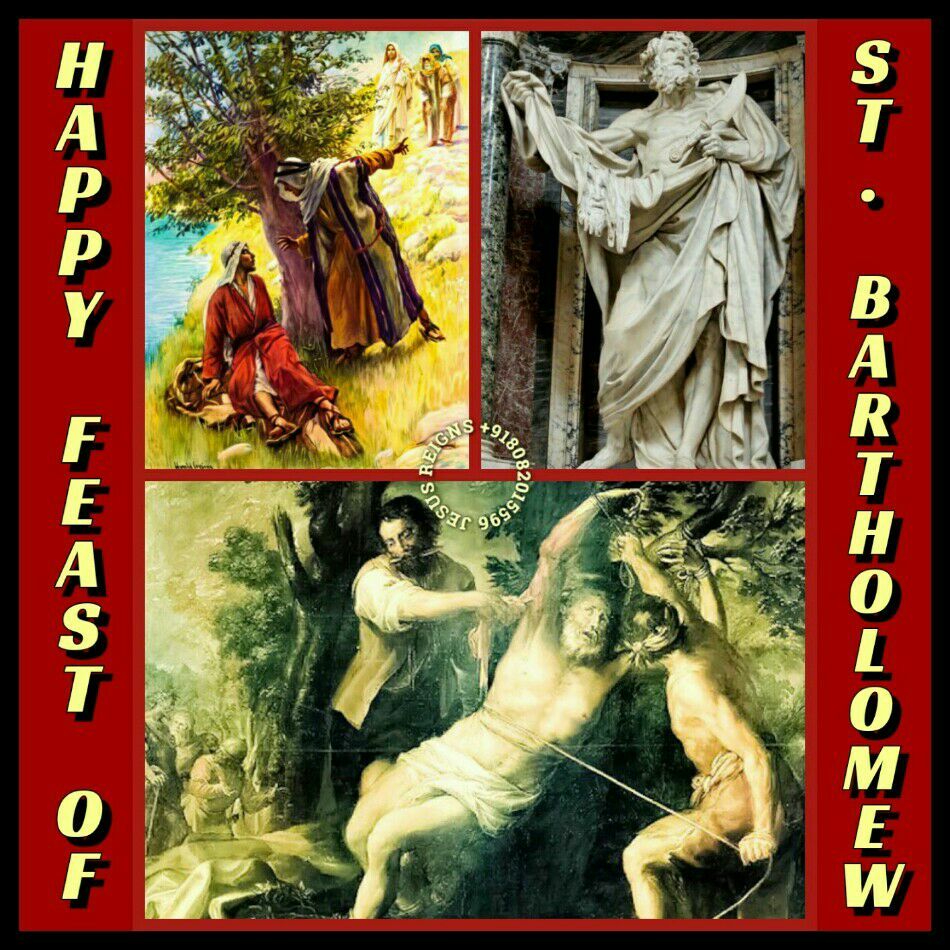 PRAYER: Strengthen in us, O Lord, the faith, by which the blessed Apostle Bartholomew clung wholeheartedly to your Son, and grant that through the help of his prayers your Church may become for all the nations the sacrament of salvation. Through our Lord Jesus Christ, your Son, who lives and reigns with you in the unity of the Holy Spirit, one God, for ever and ever. Amen.