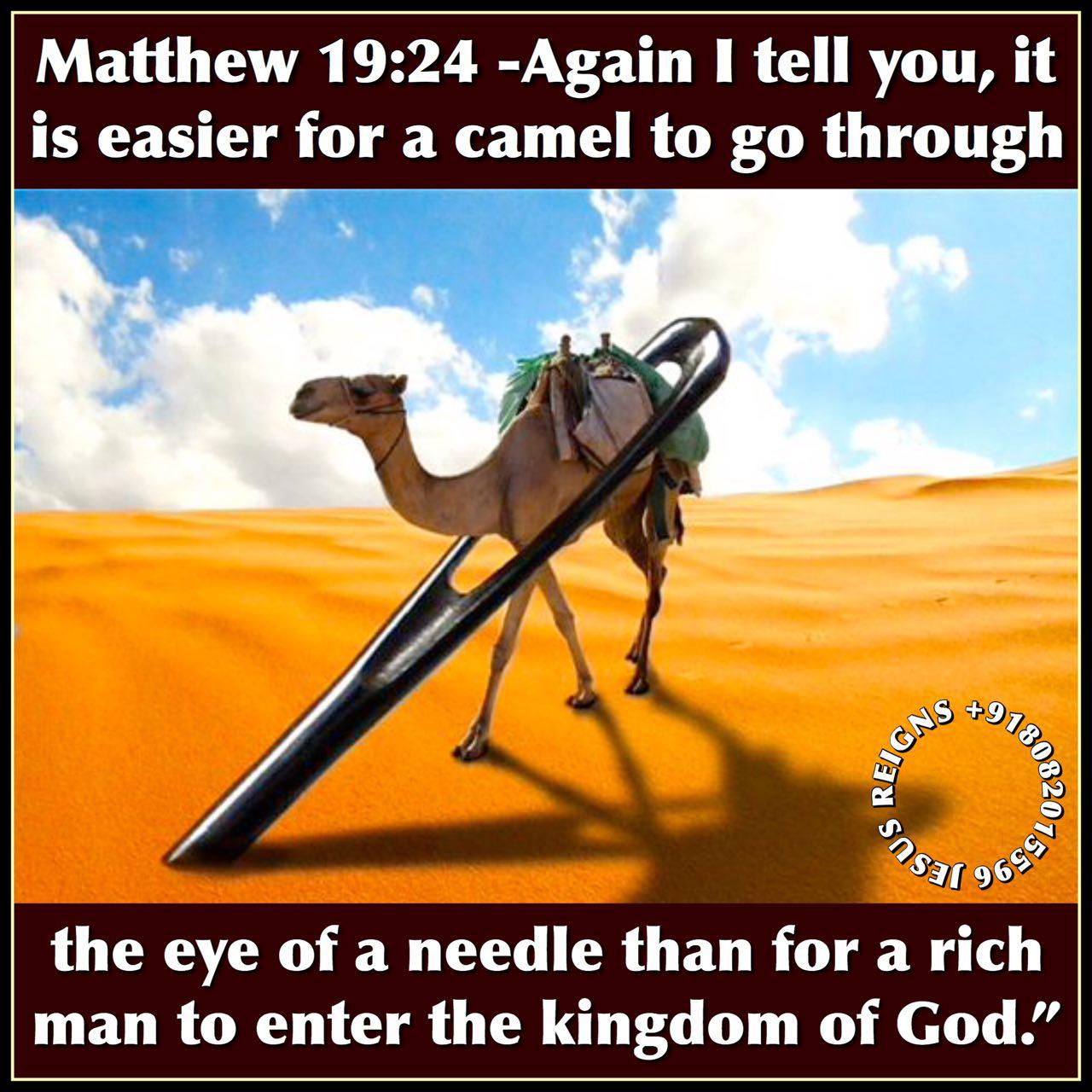 23 And Jesus said to his disciples, "Truly, I say to you, it will be hard for a rich man to enter the kingdom of heaven. 24 Again I tell you, it is easier for a camel to go through the eye of a needle than for a rich man to enter the kingdom of God." 25 When the disciples heard this they were greatly astonished, saying, "Who then can be saved?" 26 But Jesus looked at them and said to them, "With men this is impossible, but with God all things are possible." 27 Then Peter said in reply, "Behold, we have left everything and followed you. What then shall we have?" 28 Jesus said to them, "Truly, I say to you, in the new world, when the Son of man shall sit on his glorious throne, you who have followed me will also sit on twelve thrones, judging the twelve tribes of Israel. 29 And every one who has left houses or brothers or sisters or father or mother or children or lands, for my name's sake, will receive a hundredfold, and inherit eternal life. 30 But many that are first will be last, and the last first.