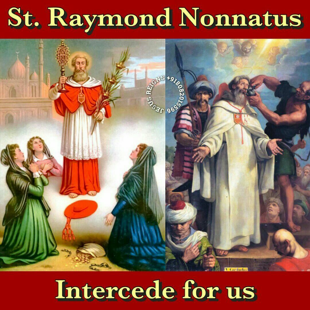 PRAYER: O God, Who didst make blessed Raymund, Thy confessor, wonderful in delivering Thy faithful held in captivity by the infidels, grant us by his intercession that, being loosed from the bonds of our sins, we may with quiet minds perform those things which are pleasing to Thee. Through our Lord Jesus Christ, Thy Son,Who liveth and reigneth with Thee in the unity of the Holy Spirit, God, forever and ever. Amen.