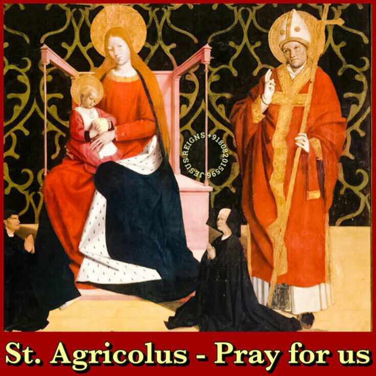 PRAYER: Loving God, today we remember St. Agricolus who devoted his life to the service of the poor, the sick and the down-trodden. Let us remember all those who live in poverty, who are in need of our assistance and who are considered the outcasts of our society. May we care for them and provide what they need to live a healthy life. We ask this through our Lord Jesus Christ, your Son, who lives and reigns with you and the Holy Spirit, one God, for ever and ever. Amen.