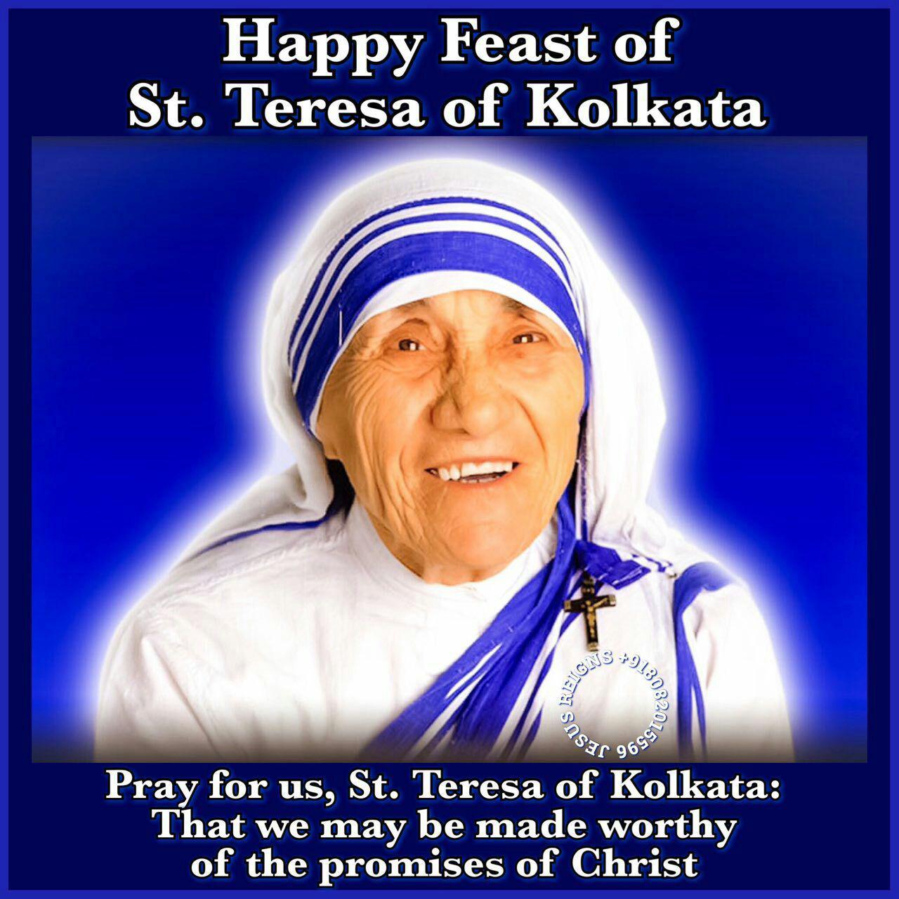PRAYER: O God, who called St. Teresa, virgin to respond to the love of your Son thirsting on the cross with outstanding charity to the poorest of the poor, grant us, we beseech you, by her intercession, to minister to Christ in his suffering brothers. Through our Lord Jesus Christ your Son who lives and reigns with you in the unity of the Holy Spirit, one God, for ever and ever. Amen.