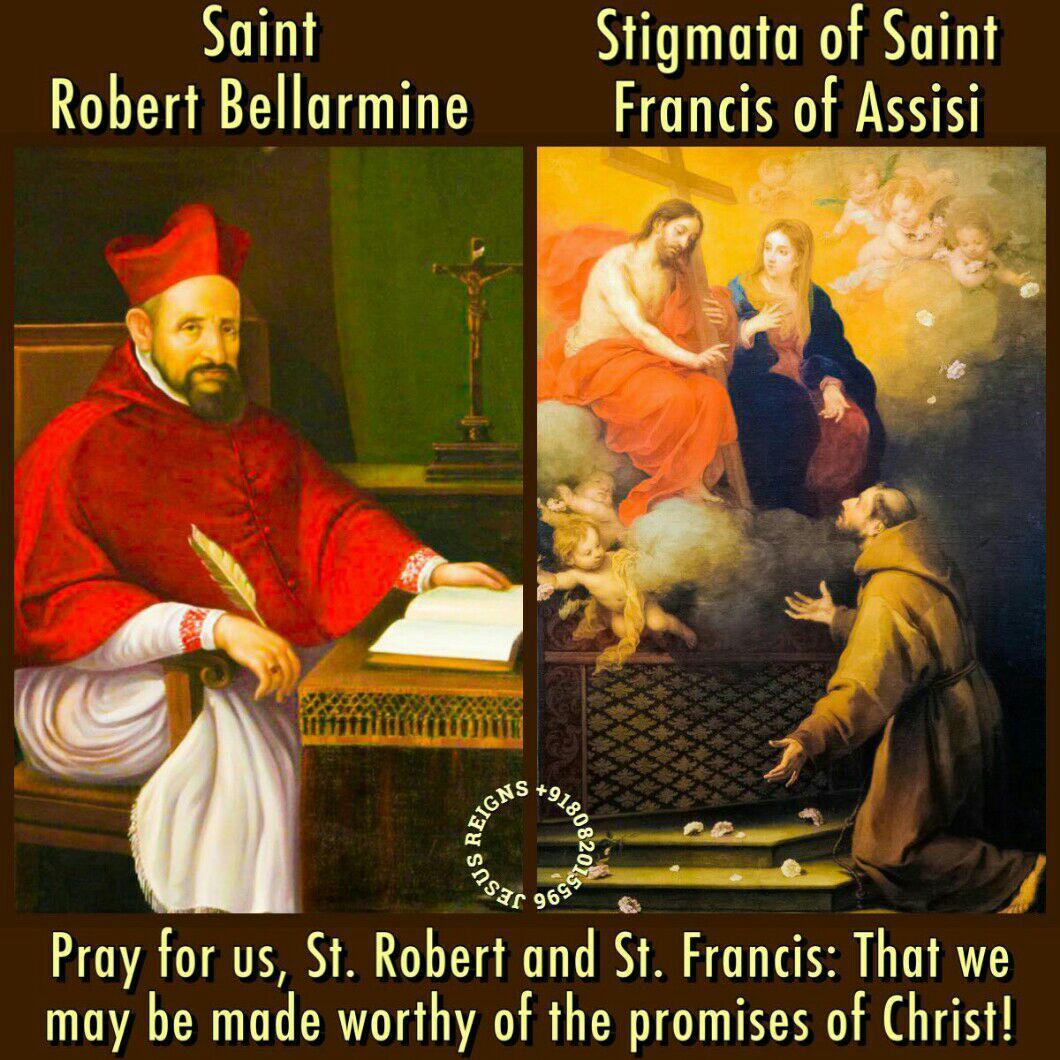PRAYER: O God, who adorned the Bishop Saint Robert Bellarmine with wonderful learning and virtue to vindicate the faith of your Church, grant, through his intercession, that in the integrity of that same faith your people may always find joy. Through our Lord Jesus Christ, your Son, who lives and reigns with you in the unity of the Holy Spirit, one God, for ever and ever. Amen.