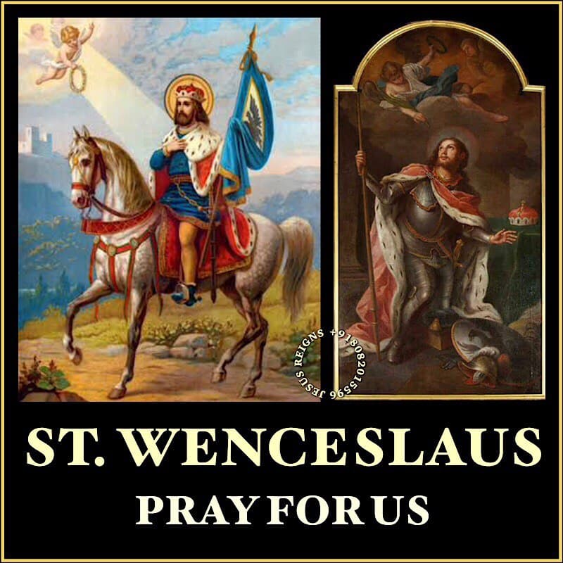 PRAYER: O God, who taught the Martyr Saint Wenceslaus to place the heavenly Kingdom before an earthly one, grant through his prayers that, denying ourselves, we may hold fast to you with all our heart. Through our Lord Jesus Christ, your Son, who lives and reigns with you in the unity of the Holy Spirit, one God, for ever and ever. Amen.