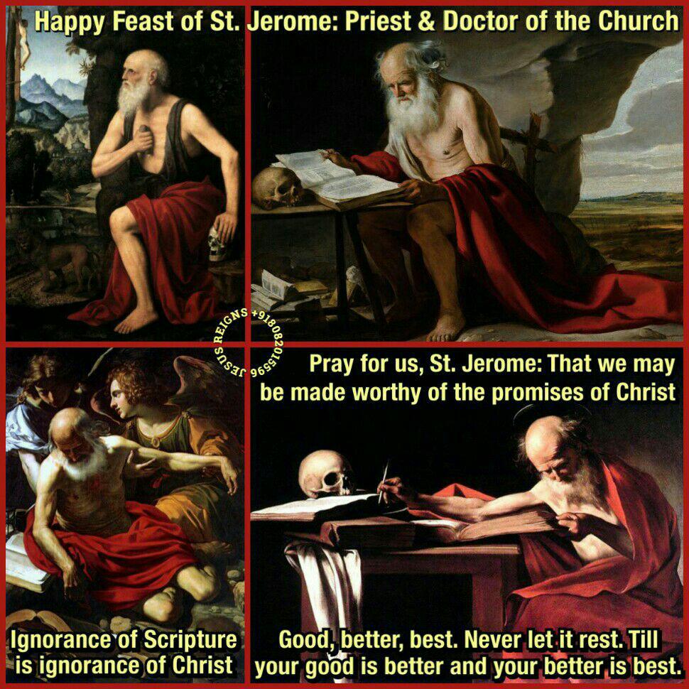 PRAYER: O God, who gave the Priest Saint Jerome a living and tender love for Sacred Scripture, grant that your people may be ever more fruitfully nourished by your Word and find in it the fount of life. Through our Lord Jesus Christ, your Son, who lives and reigns with you in the unity of the Holy Spirit, one God, for ever and ever. Amen.