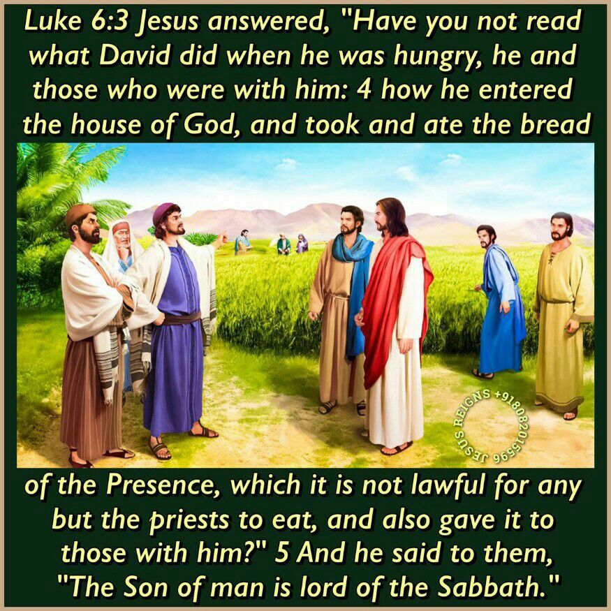 1 On a Sabbath, while he was going through the grain fields, his disciples plucked and ate some heads of grain, rubbing them in their hands. 2 But some of the Pharisees said, "Why are you doing what is not lawful to do on the Sabbath?" 3 And Jesus answered, "Have you not read what David did when he was hungry, he and those who were with him: 4 how he entered the house of God, and took and ate the bread of the Presence, which it is not lawful for any but the priests to eat, and also gave it to those with him?" 5 And he said to them, "The Son of man is lord of the Sabbath."