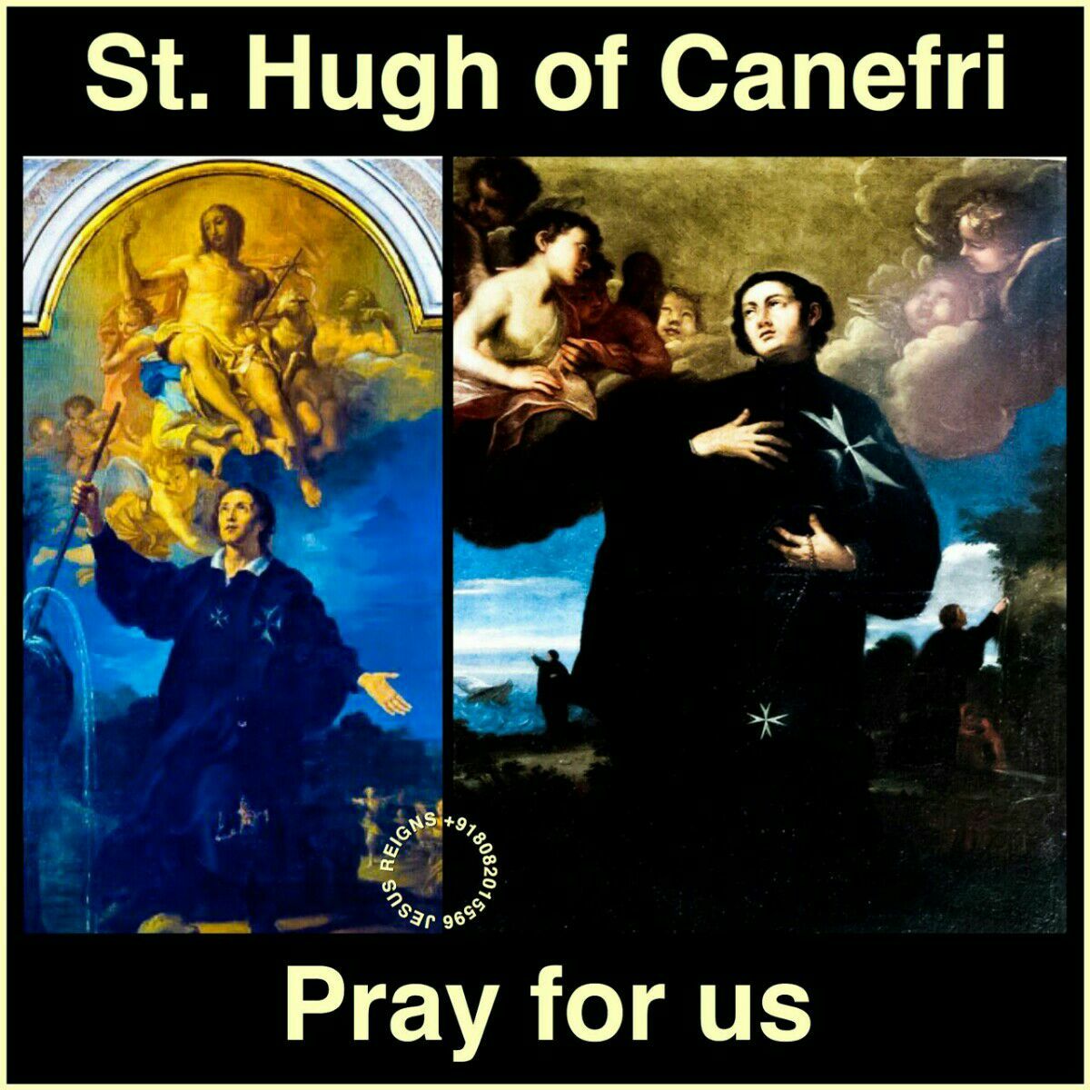 Saint Hugh was born about 1168 at Alessandria (Italy), he became a knight of the Order of St. John of Jerusalem. After lengthy campaigning in the Holy Land, he was elected Master of the Commandery of St. John di Prè in Genoa (Italy) and worked in the infirmary nearby. He was renowned for miraculous powers over the natural elements. He is believed to have died in 1233*.