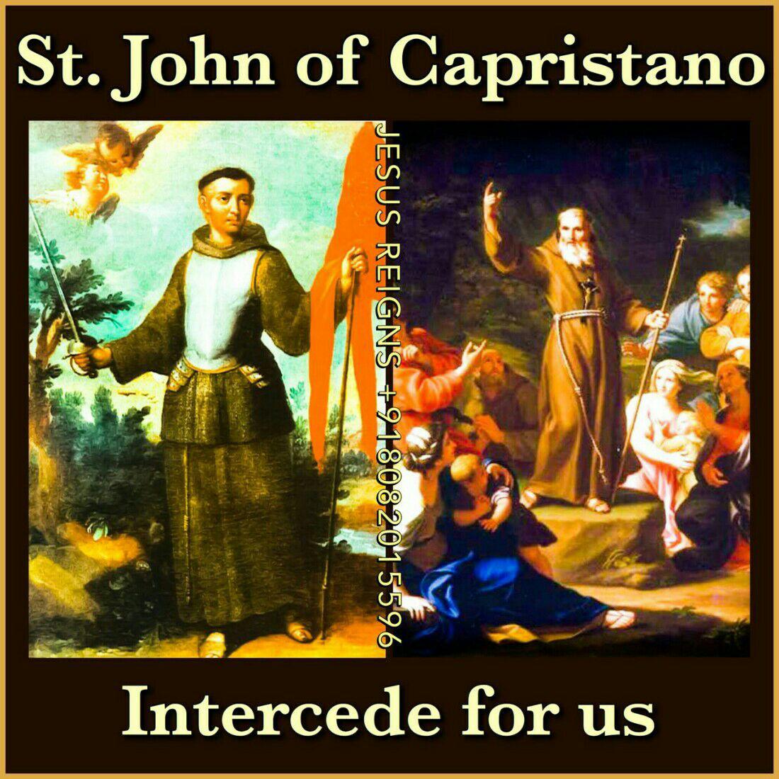 PRAYER: O God, who raised up Saint John of Capistrano to comfort your faithful people in tribulation, place us, we pray, under your safe protection and keep your Church in everlasting peace. Almighty ever-living God, grant that we may always conform our will to yours and serve your majesty in sincerity of heart. Through our Lord Jesus Christ, your Son, who lives and reigns with you in the unity of the Holy Spirit, one God, for ever and ever. Amen.