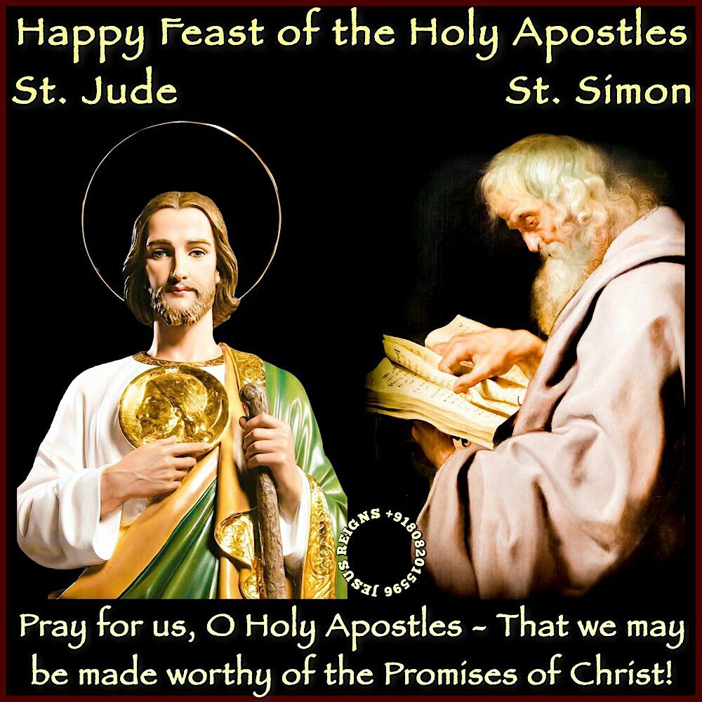 PRAYER TO ST. SIMON: O Glorious St. Simon, you were a cousin of Jesus and a devoted follower as well. You were called "the Zealot," indicating that you were willing to give your life for your religion and your freedom as a human person. Obtain for us the grace to be willing to give our lives for Christ and to labor for the freedom and peace that only God can give. Help us to spend ourselves for God on earth and be received by him in eternal bliss in heaven. Amen.
