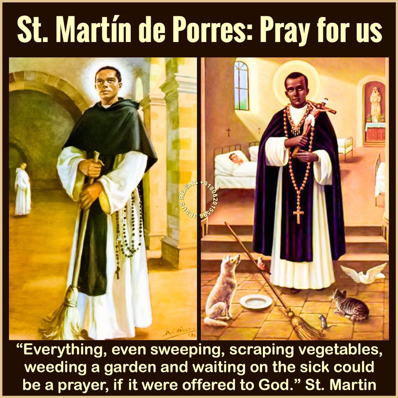 PRAYER: O God, who led Saint Martin de Porres by the path of humility to heavenly glory, grant that we may so follow his radiant example in this life as to merit to be exalted with him in heaven. Through our Lord Jesus Christ, your Son, who lives and reigns with you in the unity of the Holy Spirit, one God, for ever and ever. Amen.