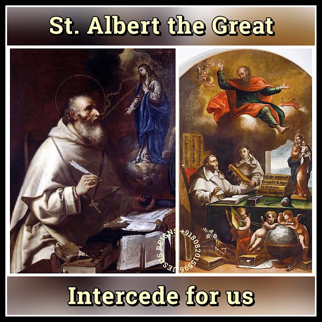 PRAYER: O God, who made the Bishop Saint Albert great by his joining of human wisdom to divine faith, grant, we pray, that we may so adhere to the truths he taught, that through progress in learning we may come to a deeper knowledge and love of you. Through our Lord Jesus Christ, your Son, who lives and reigns with you in the unity of the Holy Spirit, one God, for ever and ever. Amen.