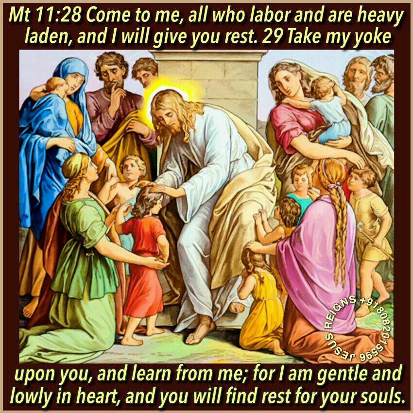 28 "Come to me, all who labor and are heavy laden, and I will give you rest.29 Take my yoke upon you, and learn from me; for I am gentle and lowly in heart, and you will find rest for your souls. 30 For my yoke is easy, and my burden is light."