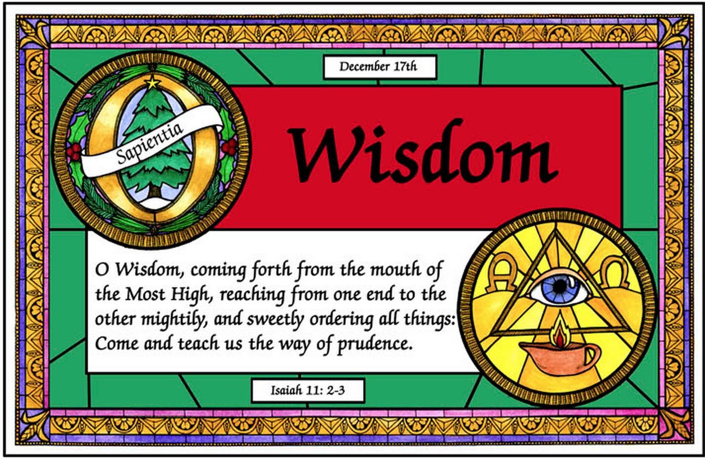 December 17, O' Sapientia (meaning O Wisdom), from Isaiah 11:2-3.