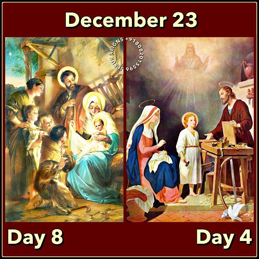 PRAYER: Heavenly Father, your grace reaches us through the hands of your most precious Son, Jesus. His response to the prayers of Mary and Joseph are assured, so we ask for their prayers during this Novena. Lord, send light to our understanding, inspiration to our decisions, and the fire of pure love to our hearts, so that we will respond to the blessing of your grace in our lives which comes through the prayers of the Holy Family. And you, our Guardian Angels and all the Saints in Heaven, intercede for us so that we may honour Jesus, Mary, and Joseph by the way we live. Help us to find ways to live as they did and to avoid looking for excuses for not changing our ways. Through this Novena in honour of the Holy Family, place in us the desire to pursue and imitate the virtues of the Holy Family and to accept your answer to our requests as your will for our lives. Amen.