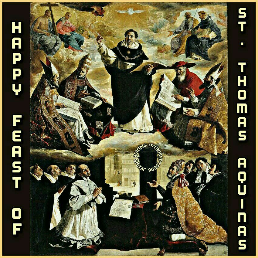 PRAYER: O God, who made Saint Thomas Aquinas outstanding in his zeal for holiness and his study of sacred doctrine, grant us, we pray, that we may understand what he taught and imitate what he accomplished. Through our Lord Jesus Christ, your Son, who lives and reigns with you in the unity of the Holy Spirit, one God, for ever and ever. Amen.