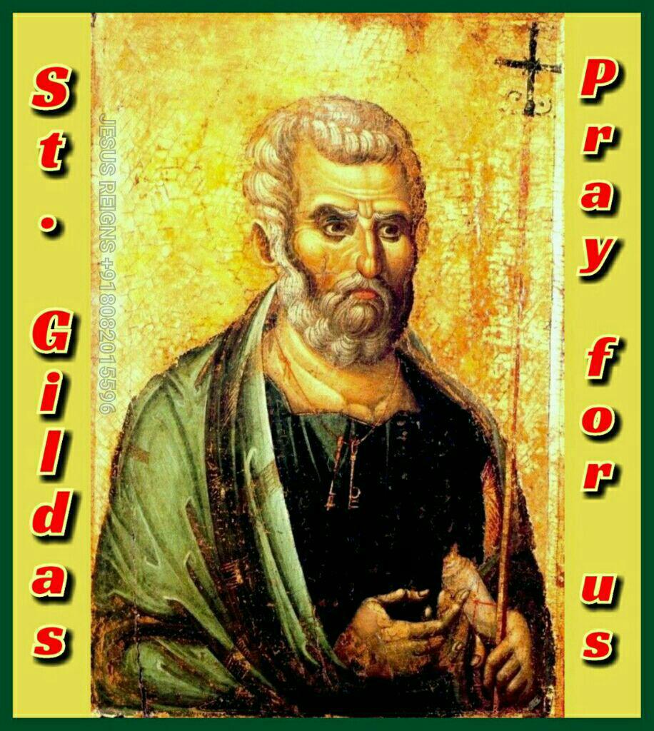 PRAYER: Saint Gildas, we thank you for your wisdom and the legacy you left for your countrymen and brethren in the faith. We pray for your intercession to help us live saintly lives so that when our days are done here we may join you and our Lord for eternity. Amen.