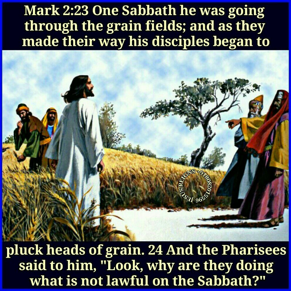 23 One Sabbath he was going through the grain fields; and as they made their way his disciples began to pluck heads of grain. 24 And the Pharisees said to him, "Look, why are they doing what is not lawful on the Sabbath?" 25 And he said to them, "Have you never read what David did, when he was in need and was hungry, he and those who were with him: 26 how he entered the house of God, when Abiathar was high priest, and ate the bread of the Presence, which it is not lawful for any but the priests to eat, and also gave it to those who were with him?" 27 And he said to them, "The Sabbath was made for man, not man for the Sabbath; 28 so the Son of man is lord even of the Sabbath."
