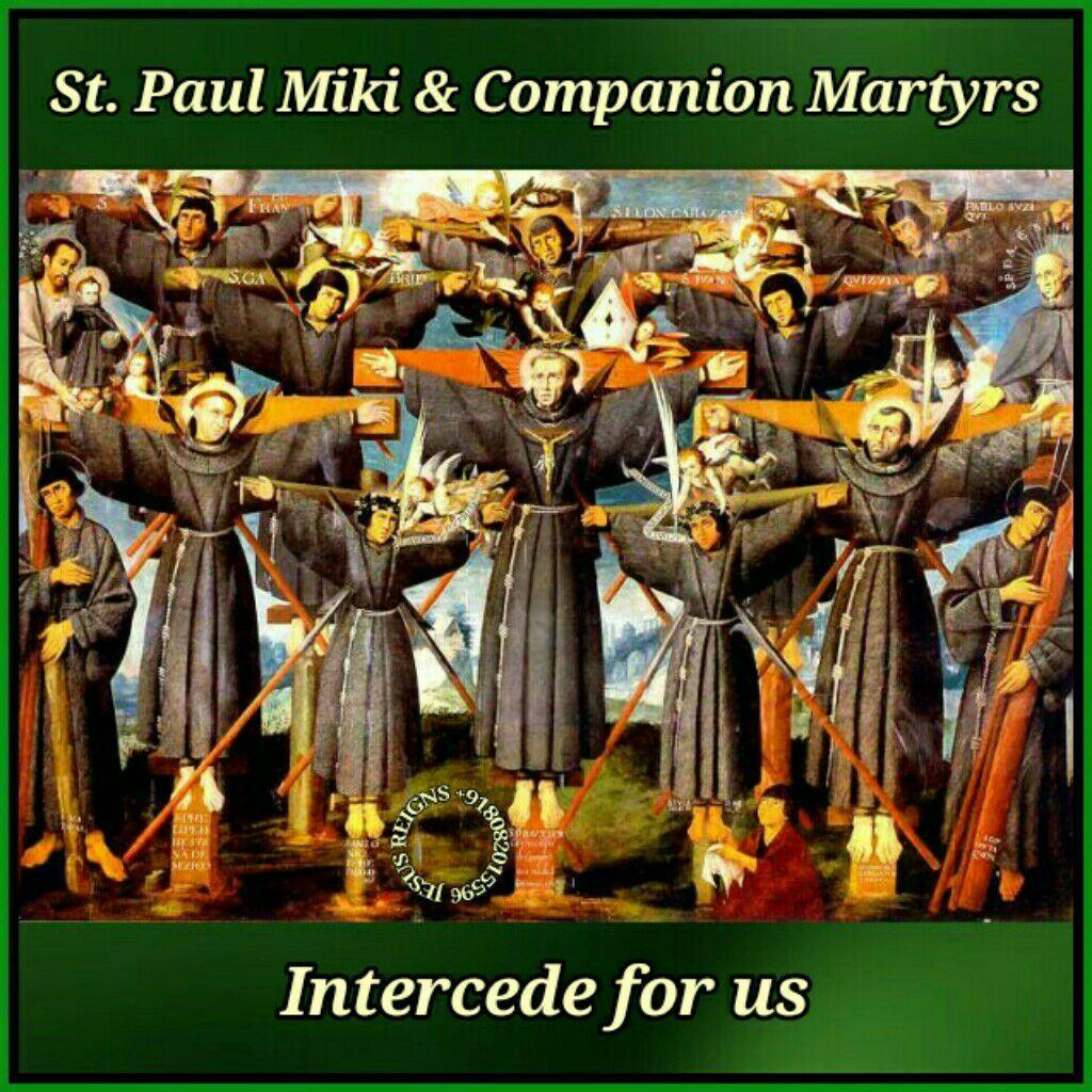 PRAYER: O God, strength of all the Saints, who through the Cross were pleased to call the Martyrs Saint Paul Miki and companions to life, grant, we pray, that by their intercession we may hold with courage even until death to the faith that we profess. Through our Lord Jesus Christ, your Son, who lives and reigns with you in the unity of the Holy Spirit, one God, for ever and ever. Amen.