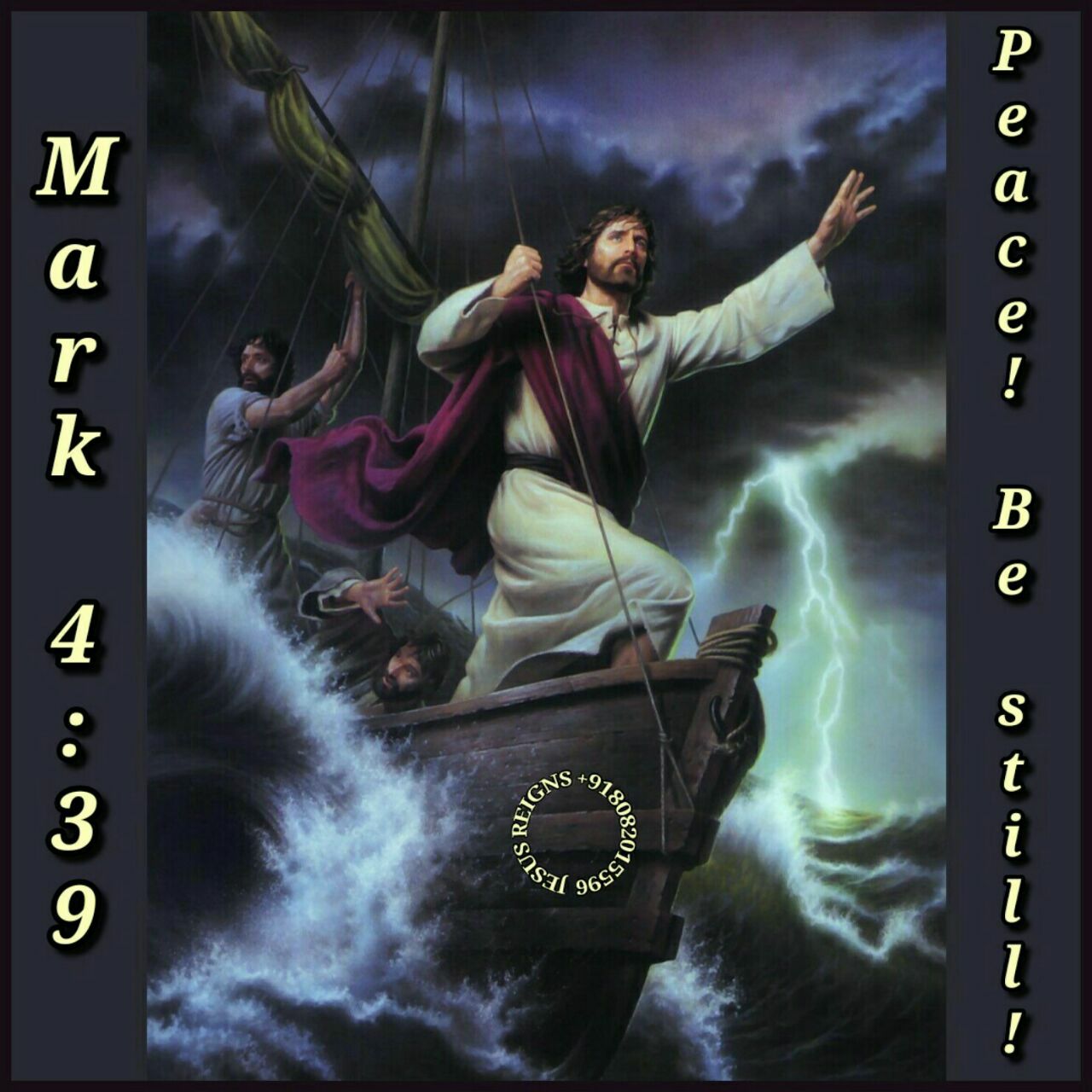 35 On that day, when evening had come, he said to them, "Let us go across to the other side." 36 And leaving the crowd, they took him with them in the boat, just as he was. And other boats were with him. 37 And a great storm of wind arose, and the waves beat into the boat, so that the boat was already filling. 38 But he was in the stern, asleep on the cushion; and they woke him and said to him, "Teacher, do you not care if we perish?" 39 And he awoke and rebuked the wind, and said to the sea, "Peace! Be still!" And the wind ceased, and there was a great calm. 40 He said to them, "Why are you afraid? Have you no faith?" 41 And they were filled with awe, and said to one another, "Who then is this, that even wind and sea obey him?"