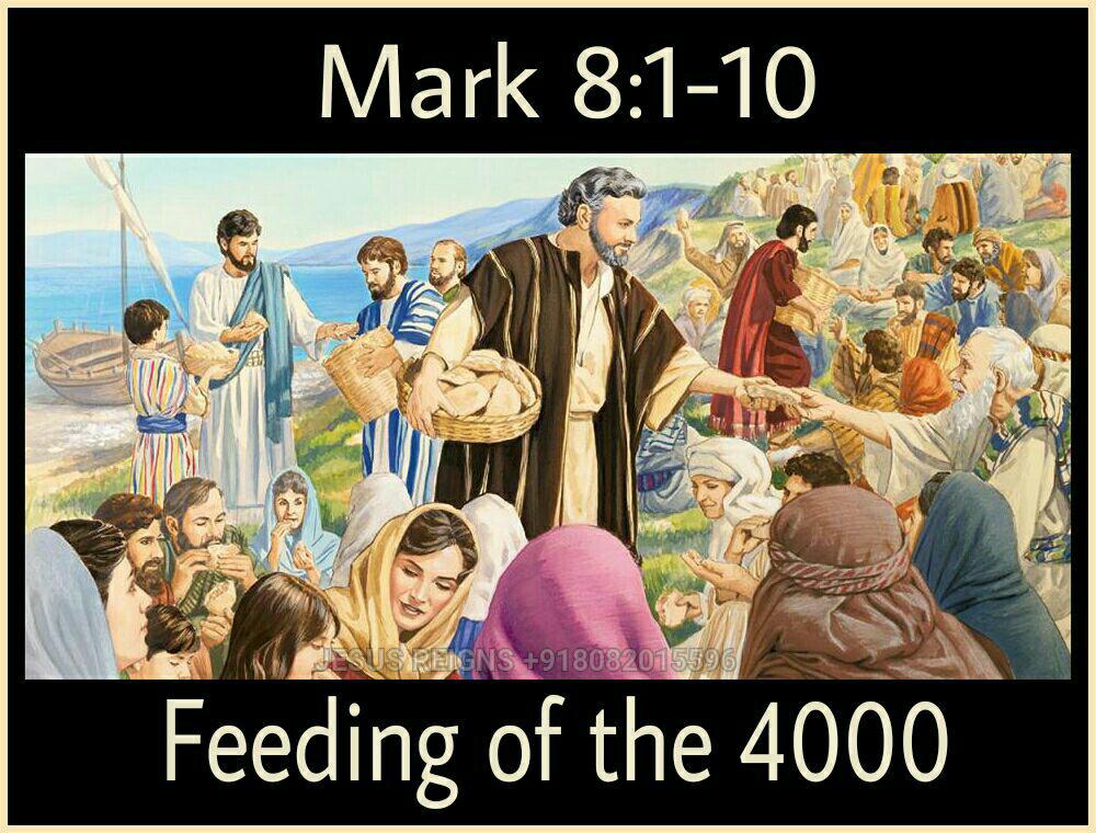 1 In those days, when again a great crowd had gathered, and they had nothing to eat, he called his disciples to him, and said to them, 2 "I have compassion on the crowd, because they have been with me now three days, and have nothing to eat; 3 and if I send them away hungry to their homes, they will faint on the way; and some of them have come a long way." 4 And his disciples answered him, "How can one feed these men with bread here in the desert?" 5 And he asked them, "How many loaves have you?" They said, "Seven."6 And he commanded the crowd to sit down on the ground; and he took the seven loaves, and having given thanks he broke them and gave them to his disciples to set before the people; and they set them before the crowd. 7 And they had a few small fish; and having blessed them, he commanded that these also should be set before them. 8 And they ate, and were satisfied; and they took up the broken pieces left over, seven baskets full. 9 And there were about four thousand people.10 And he sent them away; and immediately he got into the boat with his disciples, and went to the district of Dalmanutha.