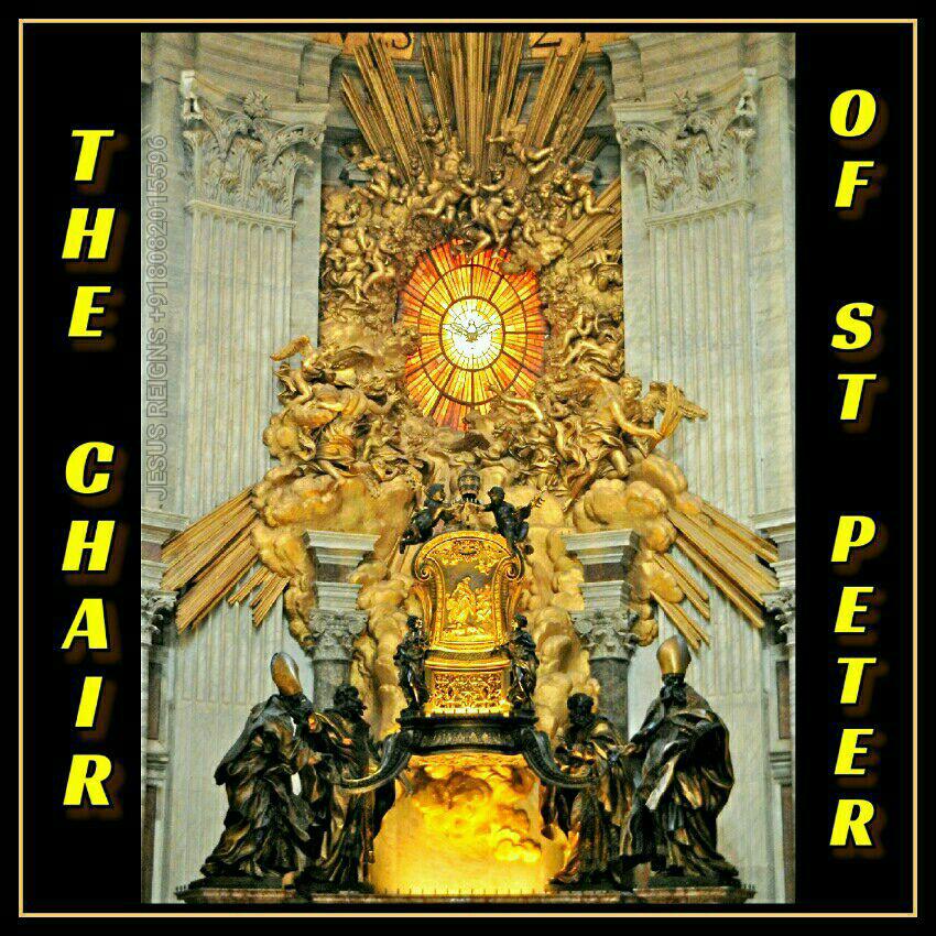The “chair” symbolizes the authority of St Peter and his successors who have served the Church of Jesus Christ as the Bishop of Rome (the Pope). The chair is a symbol representing the 2,000-year-old papacy and unity the Pope continues to bring to Catholics around the world. Without such unity the Church would splinter into numerous sects and divisions.