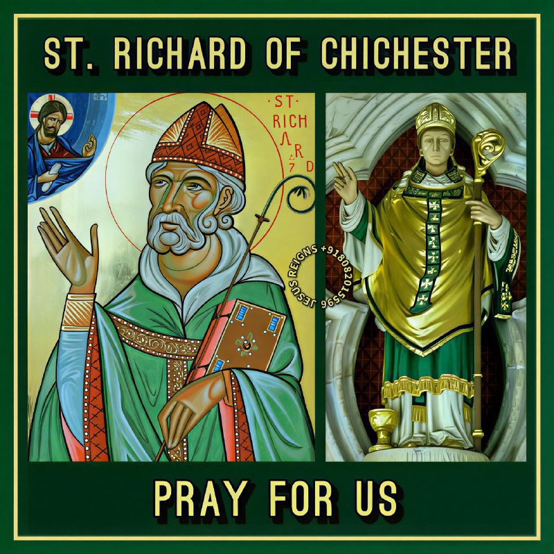 PRAYER TO ST. RICHARD: Glorious St. Richard, you are an outstanding example of Divine Love and Faith. Your greatest pleasure was in rendering service to others, and your charity to the poor commands great admiration. Intercede for us that we may persevere in Faith and Love and become sharers of your heavenly glory. St. Richard, Pray for Us! Amen.