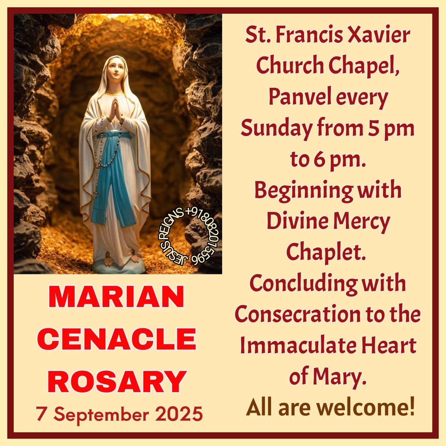 MMP Cenacle on 7th September 2025 From 5 pm to 6 pm at St. Francis Xavier Church Chapel, Panvel.